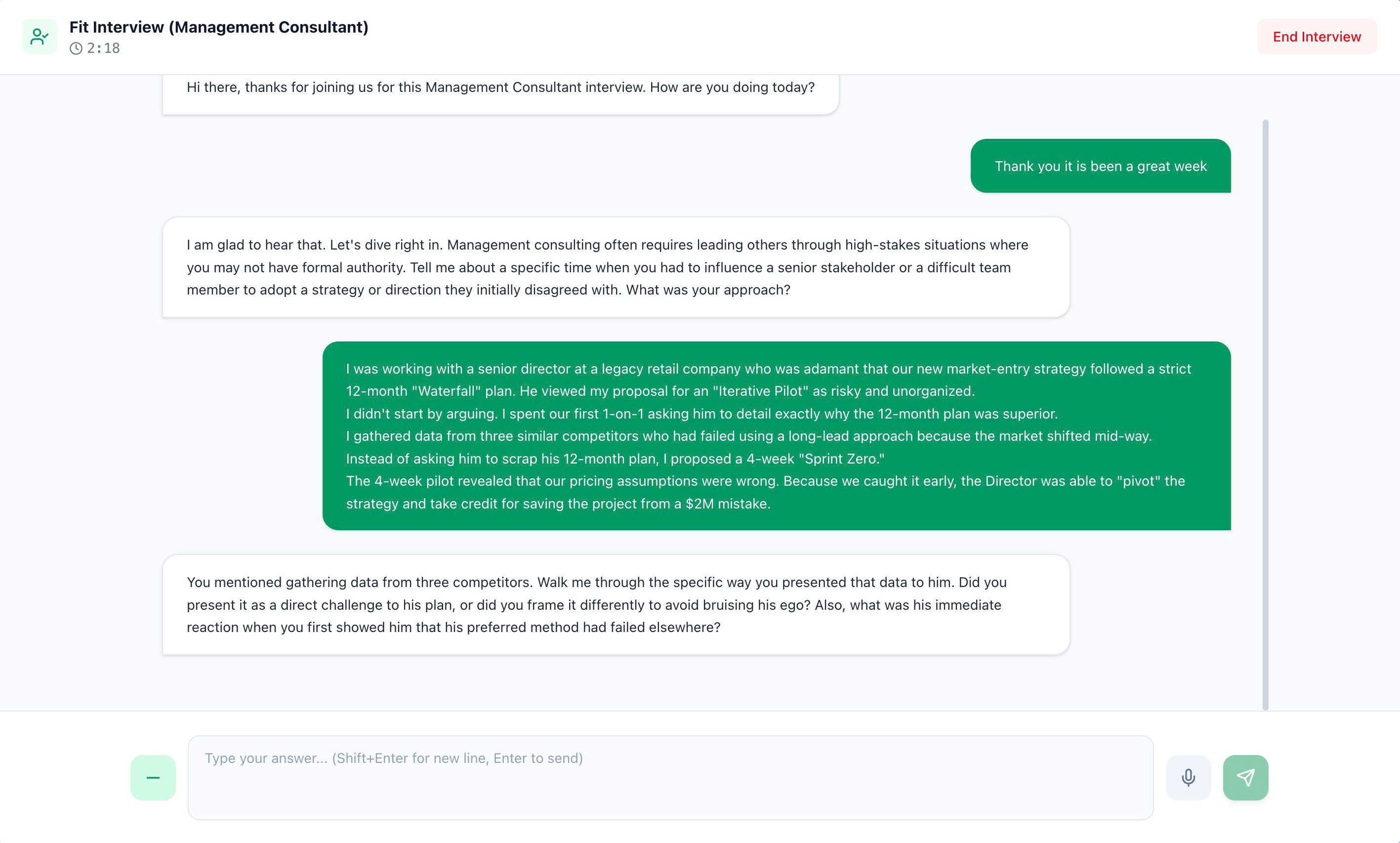 Experience the most realistic AI-powered case interview platform designed to simulate top-tier consulting environments.